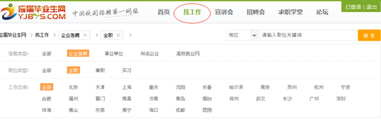 作為應(yīng)屆畢業(yè)生求職必上的求職網(wǎng)站,YJBYS求職網(wǎng)提供大量的名企校園招聘網(wǎng)申入口,你可以你可以通過(guò)點(diǎn)擊在網(wǎng)站首頁(yè)頂部導(dǎo)航欄“找工作”進(jìn)入企業(yè)、事業(yè)單位、知名企業(yè)招聘專區(qū),點(diǎn)擊“知名企業(yè)”便可得到各知名企業(yè)校招信息。當(dāng)然你也可以點(diǎn)擊首頁(yè)“校園招聘”或者輸入 直接進(jìn)入名企校招專區(qū)。